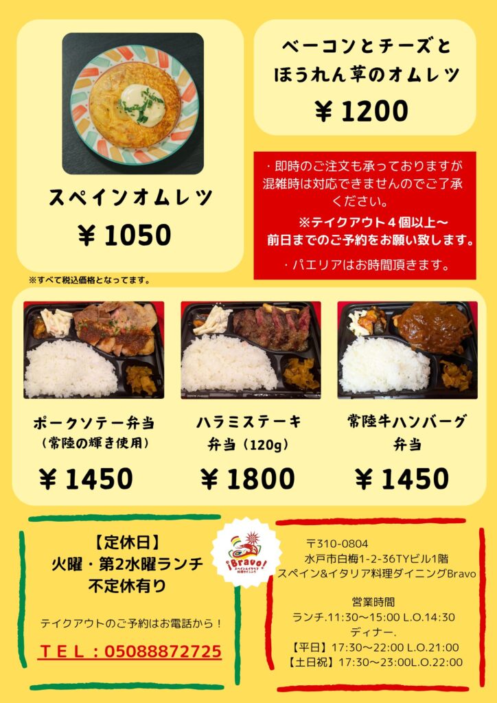 2025/11/7 BRAVOテイクアウトメニュー 即時のご注文も受付しておりますが、混雑時は対応できませんのでご了承ください。 前日までのご予約をおすすめしております。 << 前の記事へ 一覧へ 次の記事へ >>