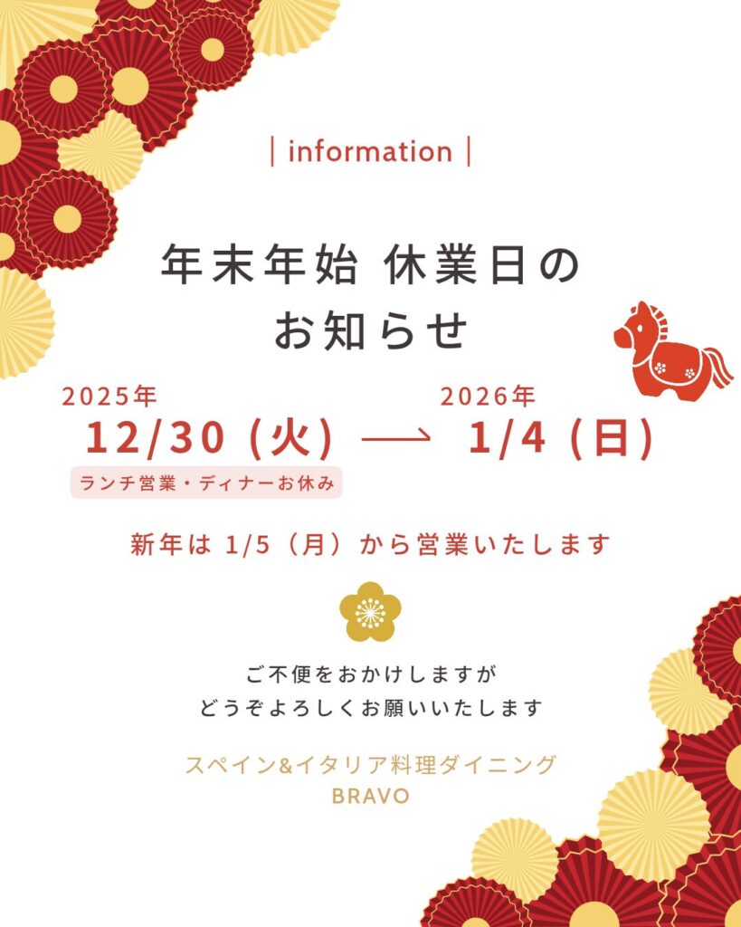 年末年始・休業日のお知らせ